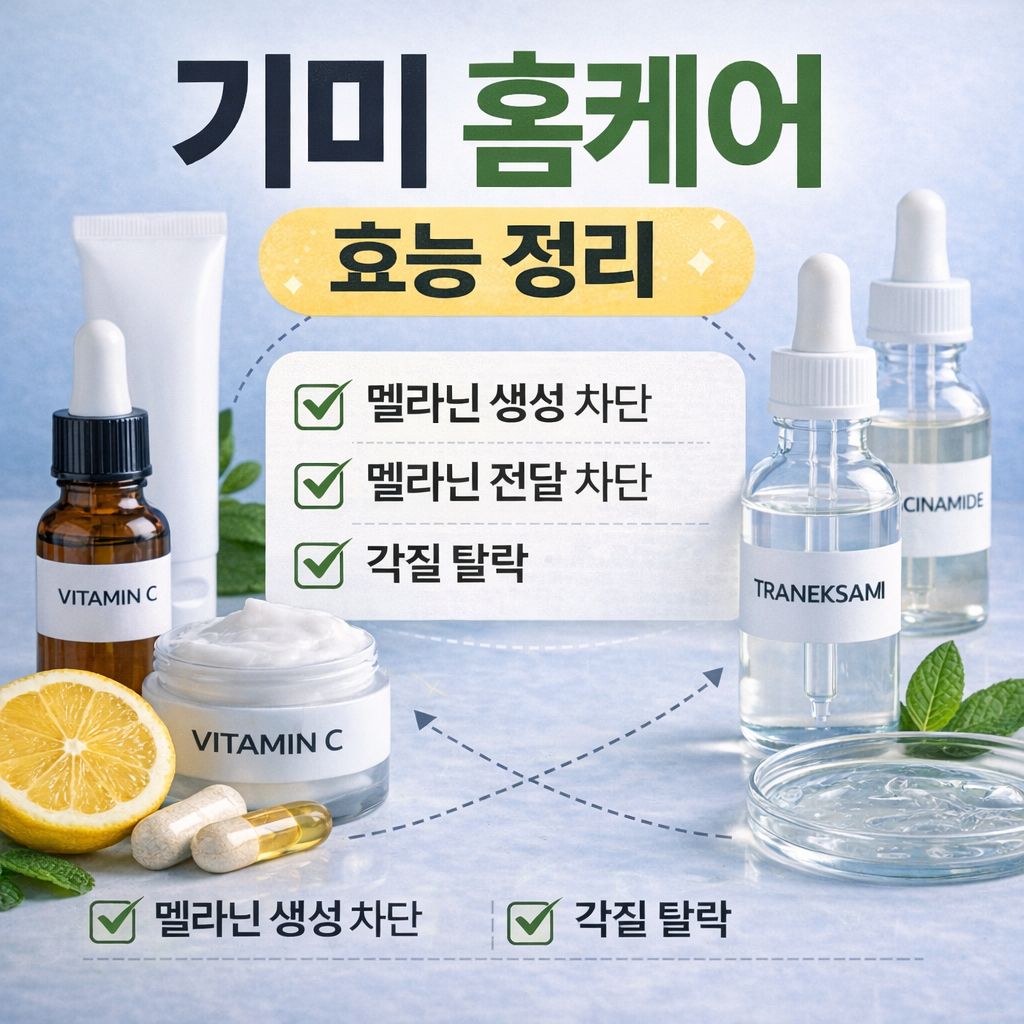 그러니까 기미 홈케어는 단순히 "밝아지는 크림"을 바르는 게 아니라, 멜라닌 생성의 어느 단계를 어떻게 차단할 것인지를 따지는 일입니다.