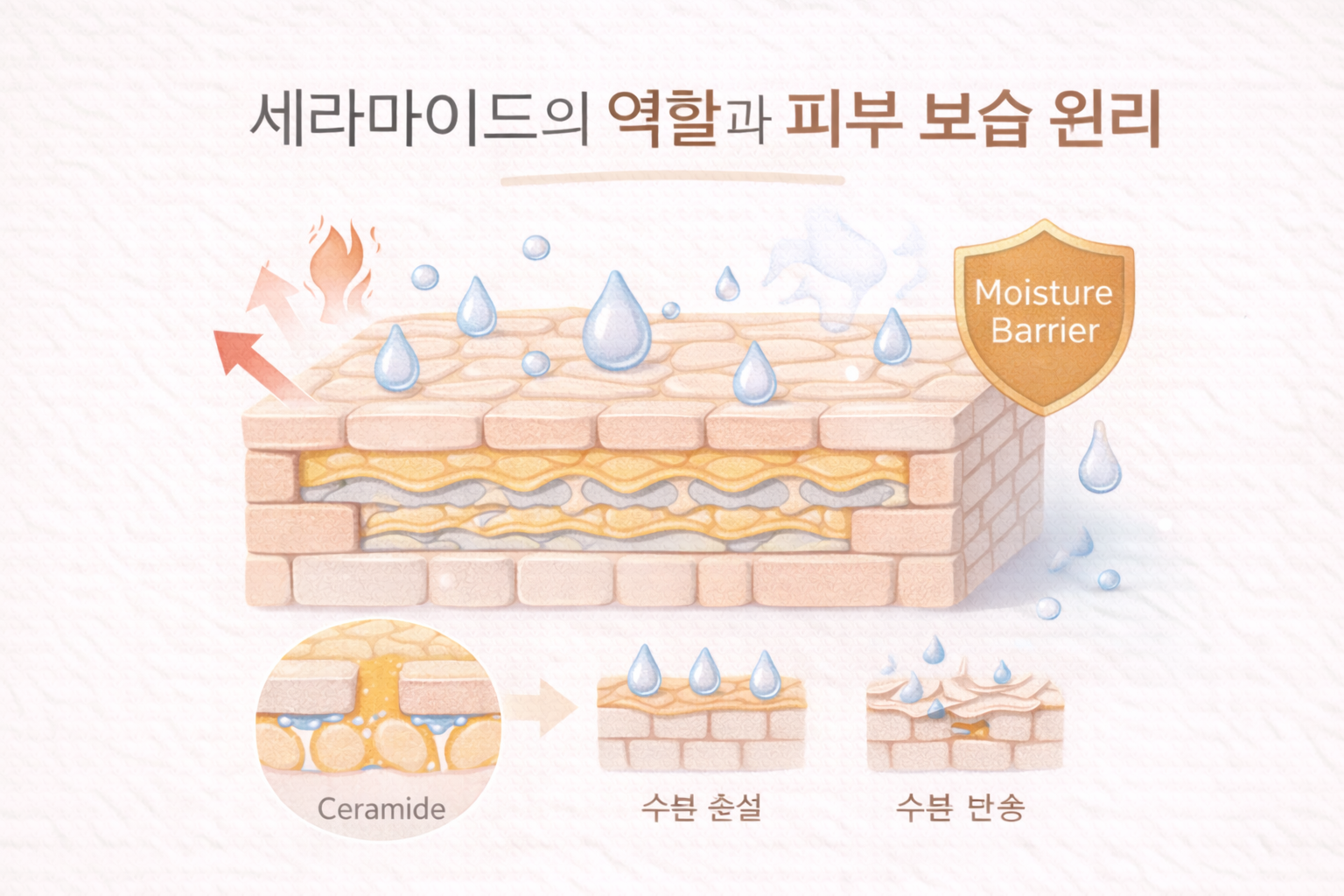 세라마이드는 피부 보습의 중심에 있는 구조적 성분이다. 단순히 촉촉한 느낌을 만드는 것이 아니라, 피부가 스스로 수분을 지킬 수 있도록 돕는다. 이 차이를 이해하면 제품 선택 기준도 달라진다.