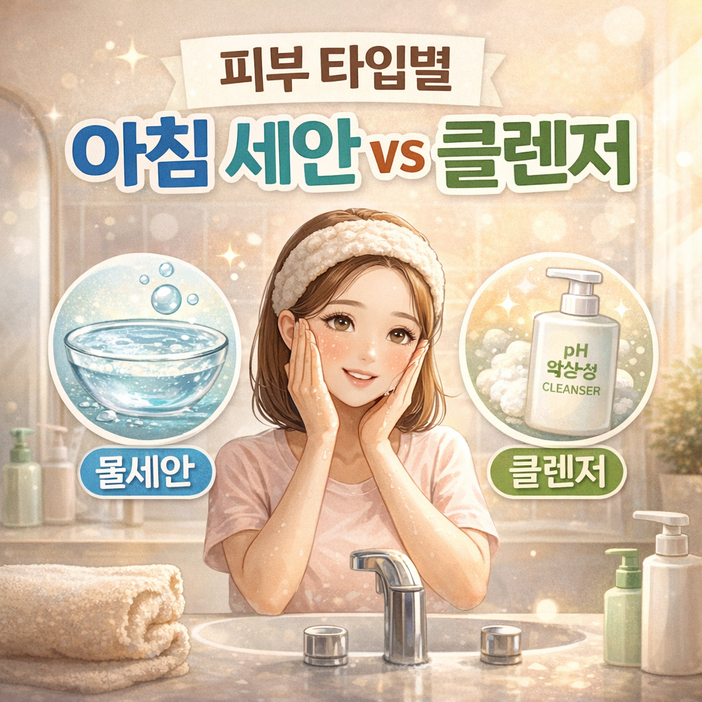 아침에 일어나서 세수대 앞에 서면 늘 고민이 생깁니다. '오늘은 물로만 씻을까, 아니면 클렌저를 써야 할까?' 저도 한동안 이 고민을 매일 반복했습니다. 특히 제 코 주변 모공이 눈에 띄게 보일 때는 '혹시 내가 지성 피부인가?' 하는 의문까지 들었습니다. 하지만 실제로는 속건조 타입의 건성 피부였고, 자극으로 인해 모공이 도드라져 보였던 것뿐이었습니다. 이후 제 피부 상태를 정확히 파악하고 세안 방법을 바꾸면서 피부 컨디션이 눈에 띄게 좋아졌습니다. 오늘은 피부 타입별로 아침 세안을 어떻게 다르게 접근해야 하는지, 그리고 물세안과 약산성 클렌저 중 무엇을 선택해야 하는지에 대한 실제 경험을 나눠보겠습니다.
